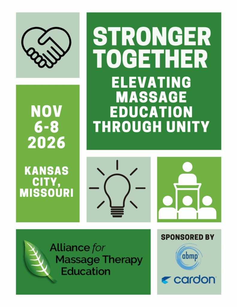 November 6-8, 2026Kansas City, MissouriThe Alliance for Massage Therapy Education is pleased to host its 2026 Educational Conference in Kansas City, MO, the weekend of November 6-8th, 2026, at the […]