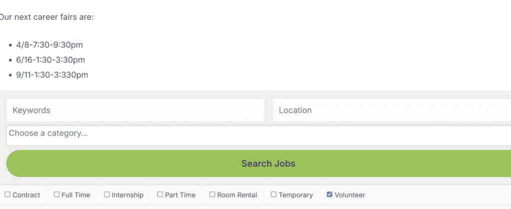 - Check the box for “Volunteer” under Job Type