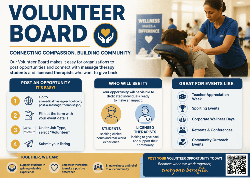 At the Arizona School of Medical Massage & Wellness, we are proud to support both our students and the community through meaningful volunteer opportunities.