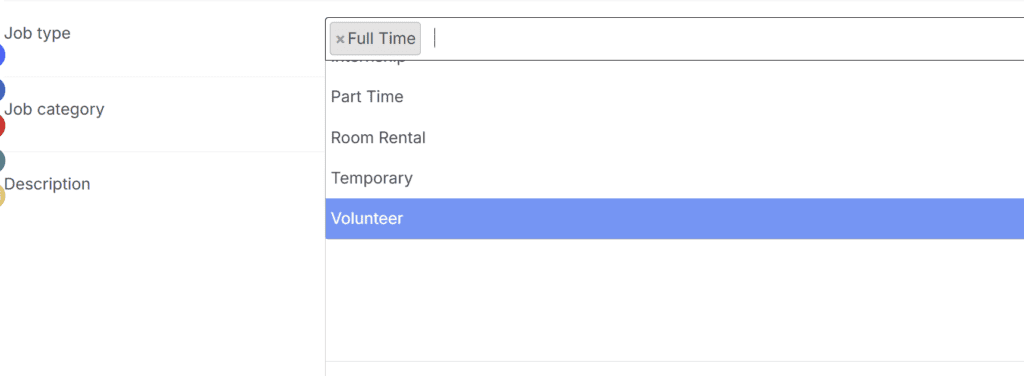 - Under Job Type, select “Volunteer”